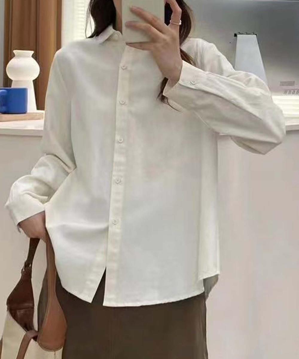 やわらかい印象のラウンドカラーが特徴のオーバーシャツです。ゆったりし過ぎないシルエットでリラックス感があり、カジュアルにもきれいめにも着こなせるアイテムです。クラシカルでシンプルなデザインで、女性らしい柔らかな雰囲気を演出します。
