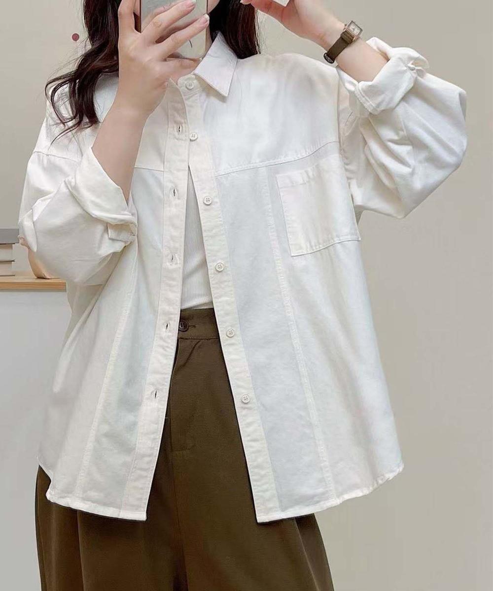 オーバーサイズシルエットが特徴的なポケット付きカラーシャツです。フロントの大きなポケットがアクセント。ドロップショルダーでボリューム感のある袖とリラックス感のあるシルエットで、カジュアルでこなれ感のあるアイテムです。