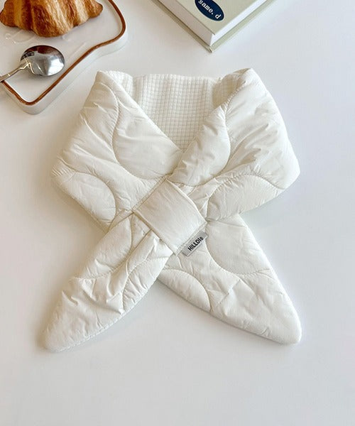シンプルなデザインで様々なスタイリングにマッチするキルティングマフラー。