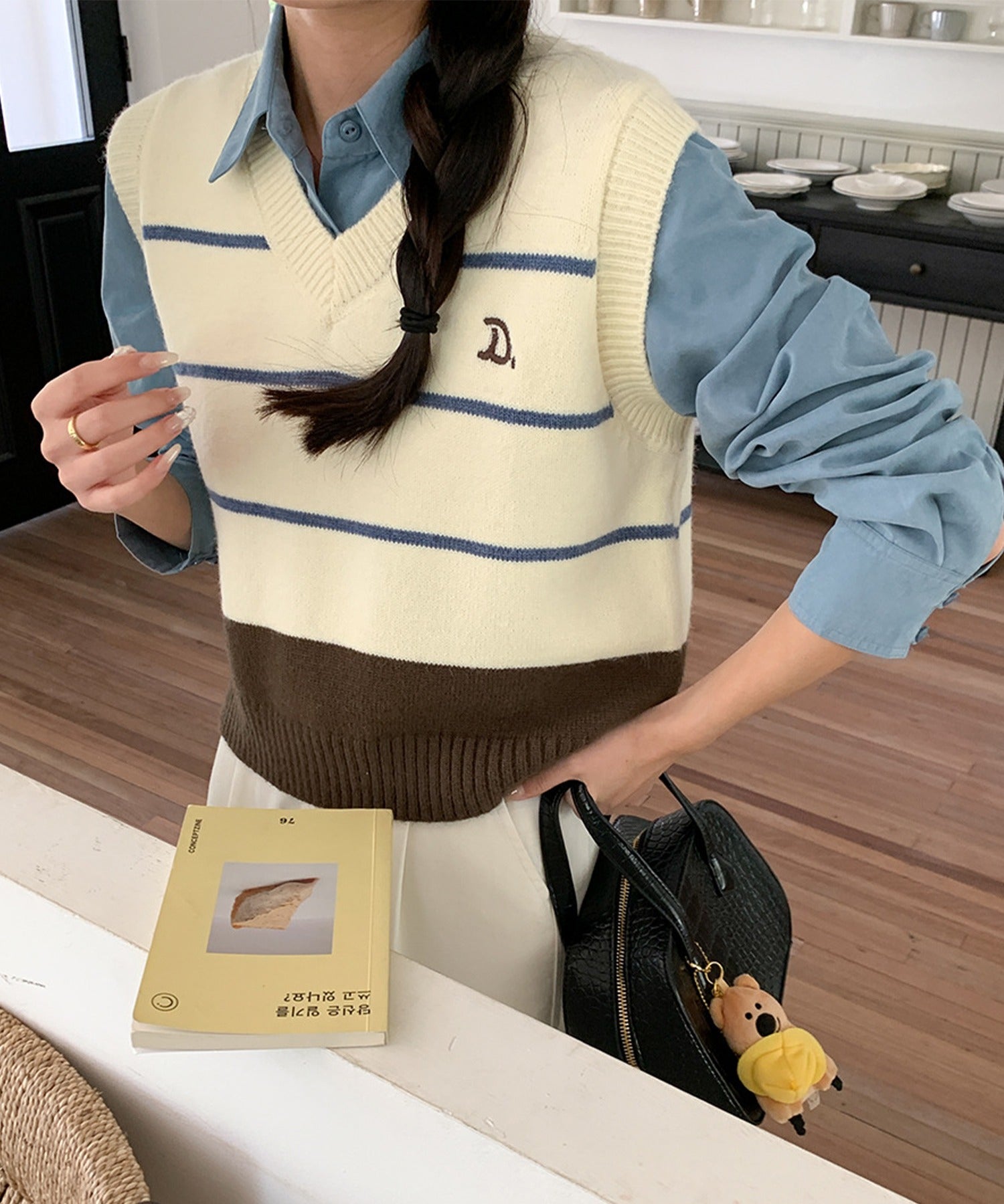 落ち着いたカラーリングとデザインがレトロな雰囲気漂うニットベスト。
