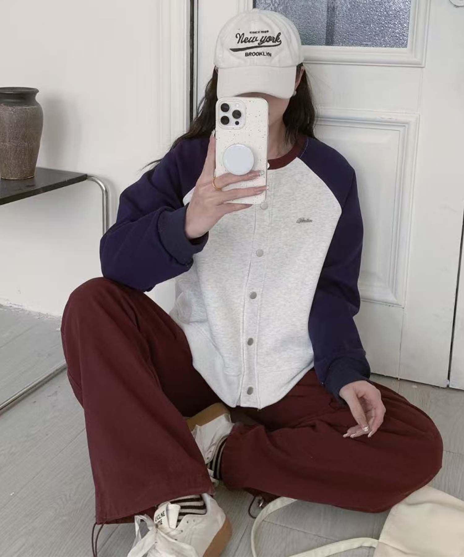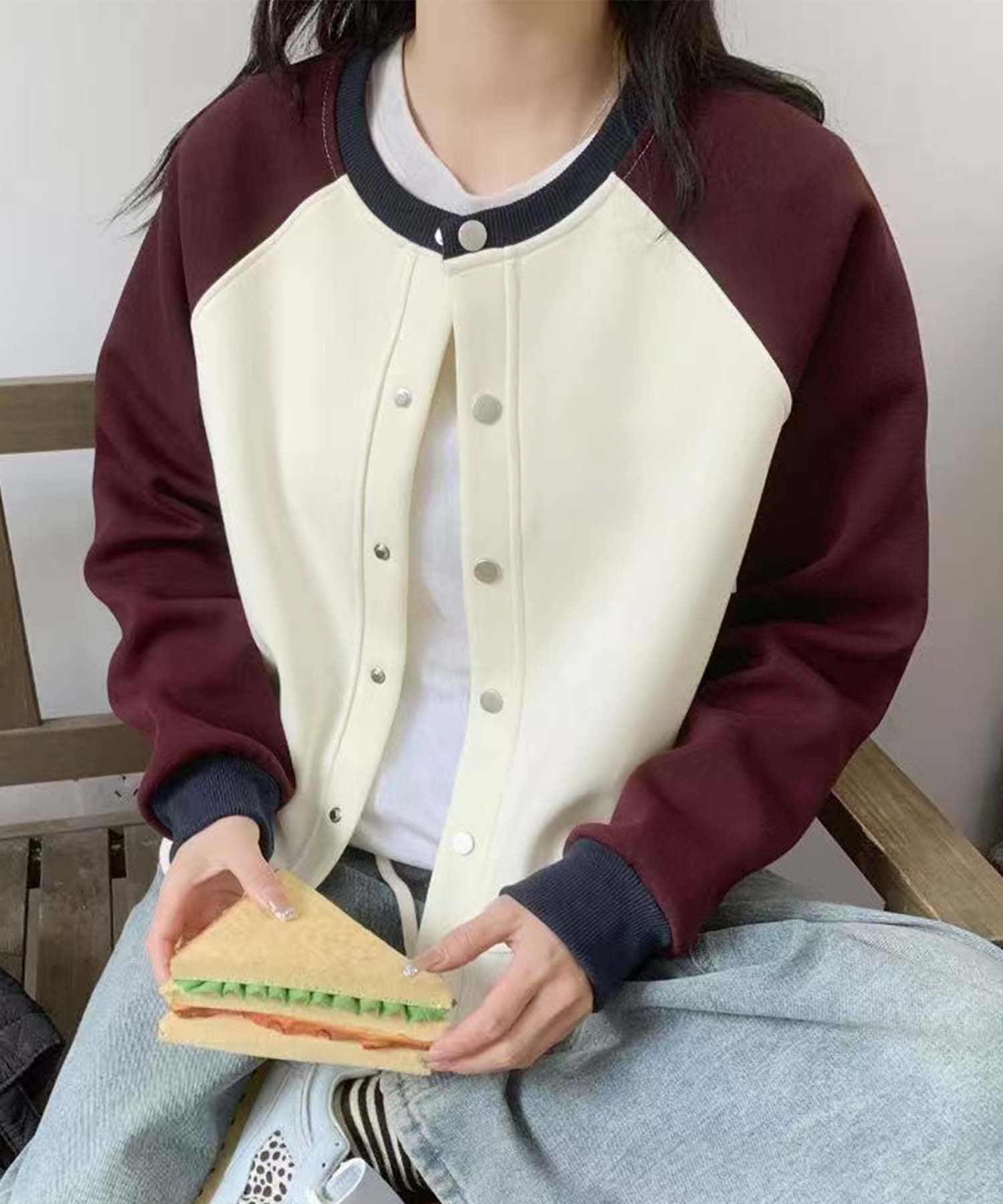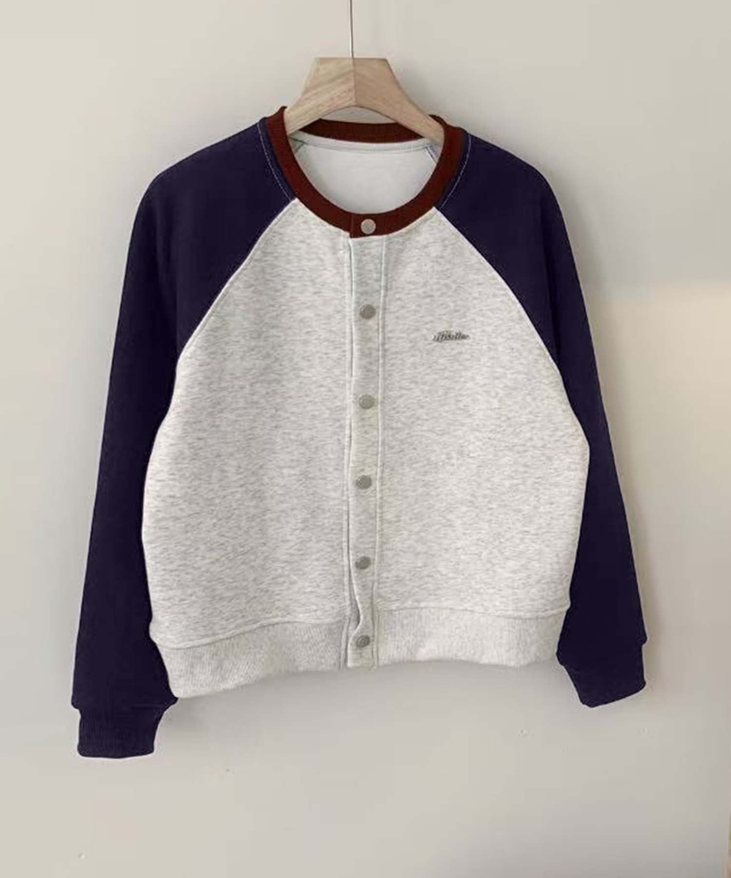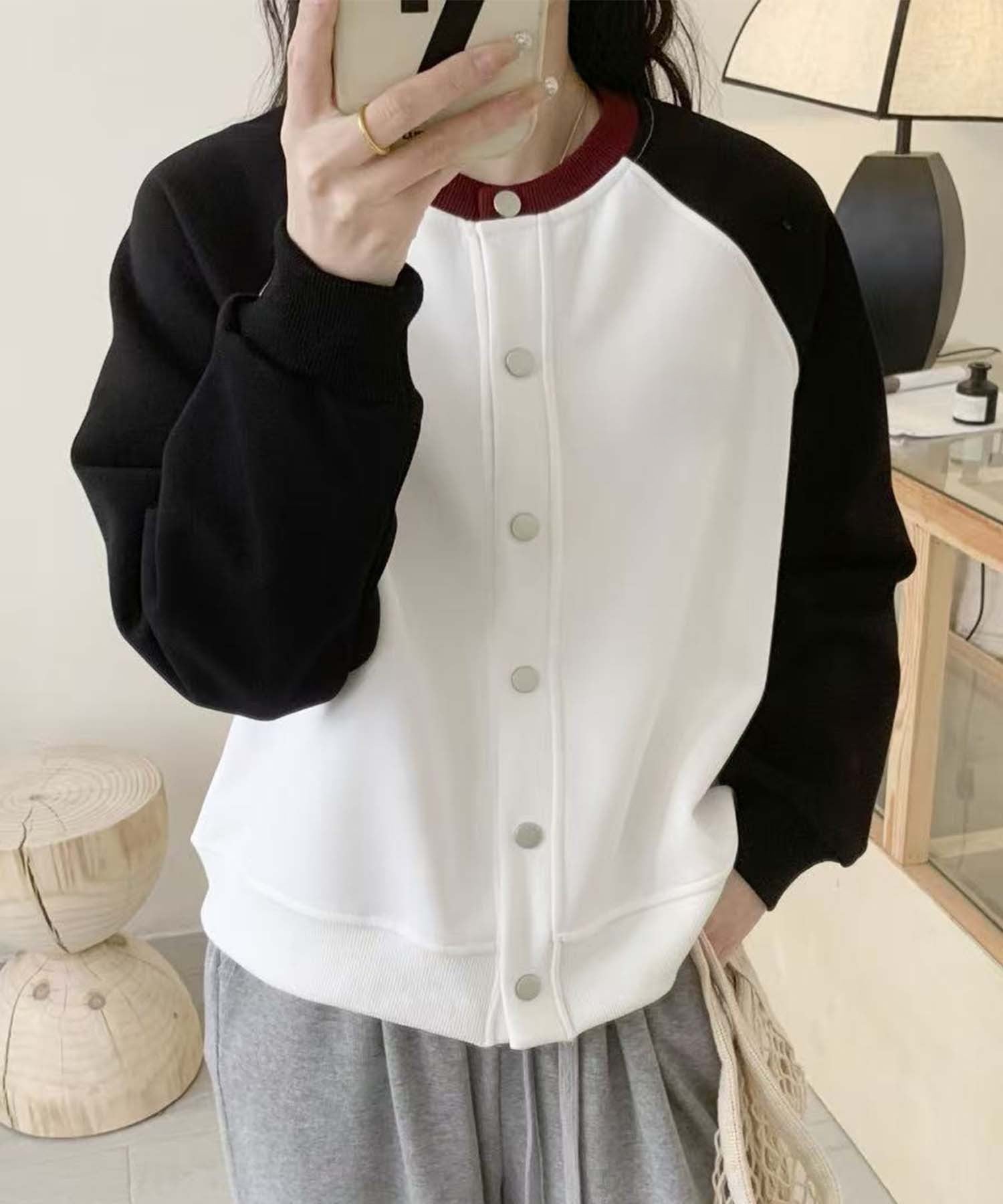 ラグランスリーブが特徴のカジュアルなボタンカーディガン。シンプルなボタンデザインと、異なる色の袖が絶妙に調和し、スタイリッシュでおしゃれ度UP。ゆったりとしたシルエットで日常使いに便利なアイテムです。