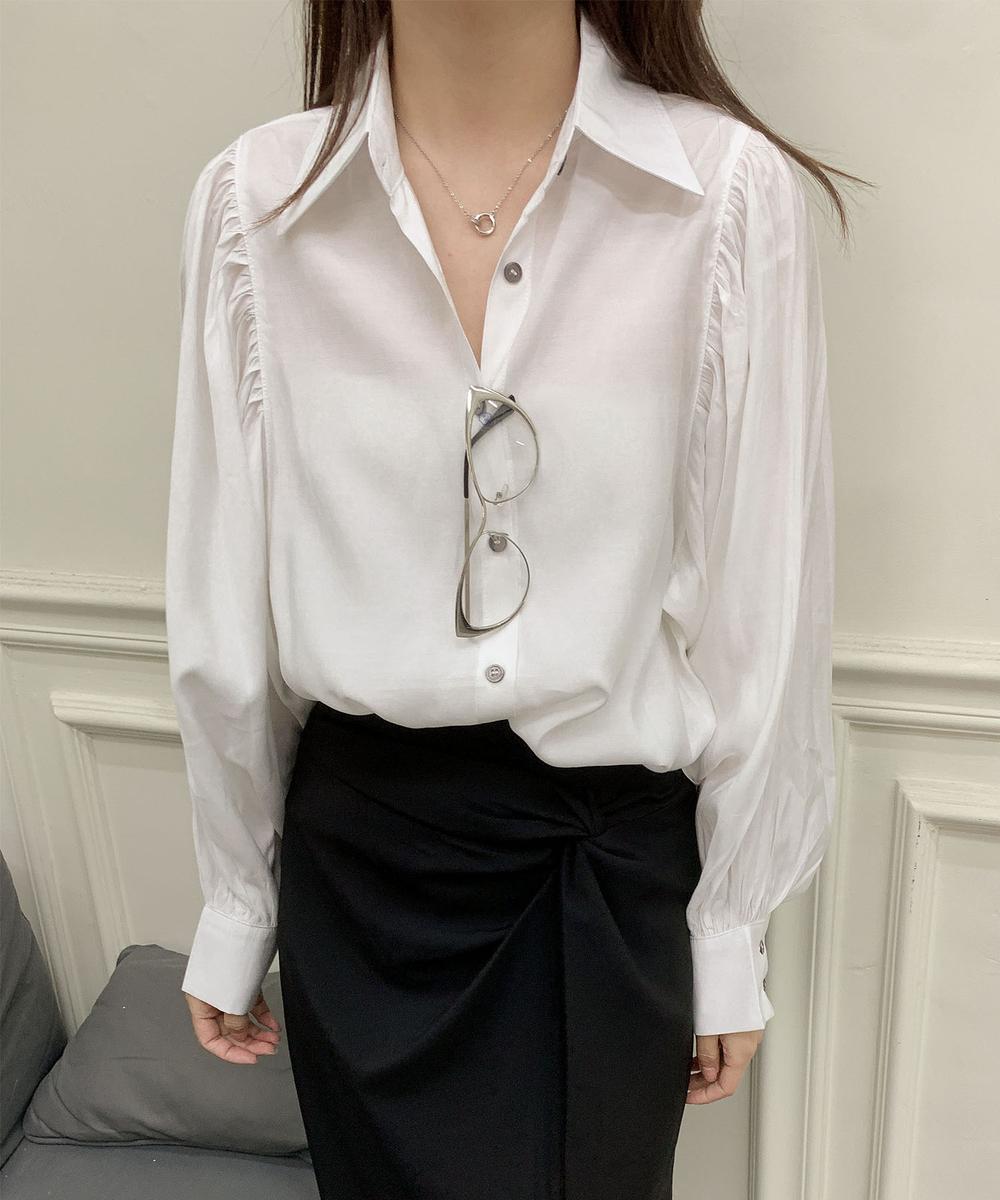 パフスリーブ長袖シャツブラウス