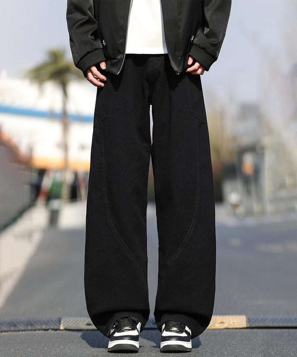 ルーズなシルエットと、シンプルなデザインで何にでも合わせやすく、スニーカーやブーツとの相性も抜群。Tシャツやスウェットと合わせれば、こなれ感のある着こなしが完成。