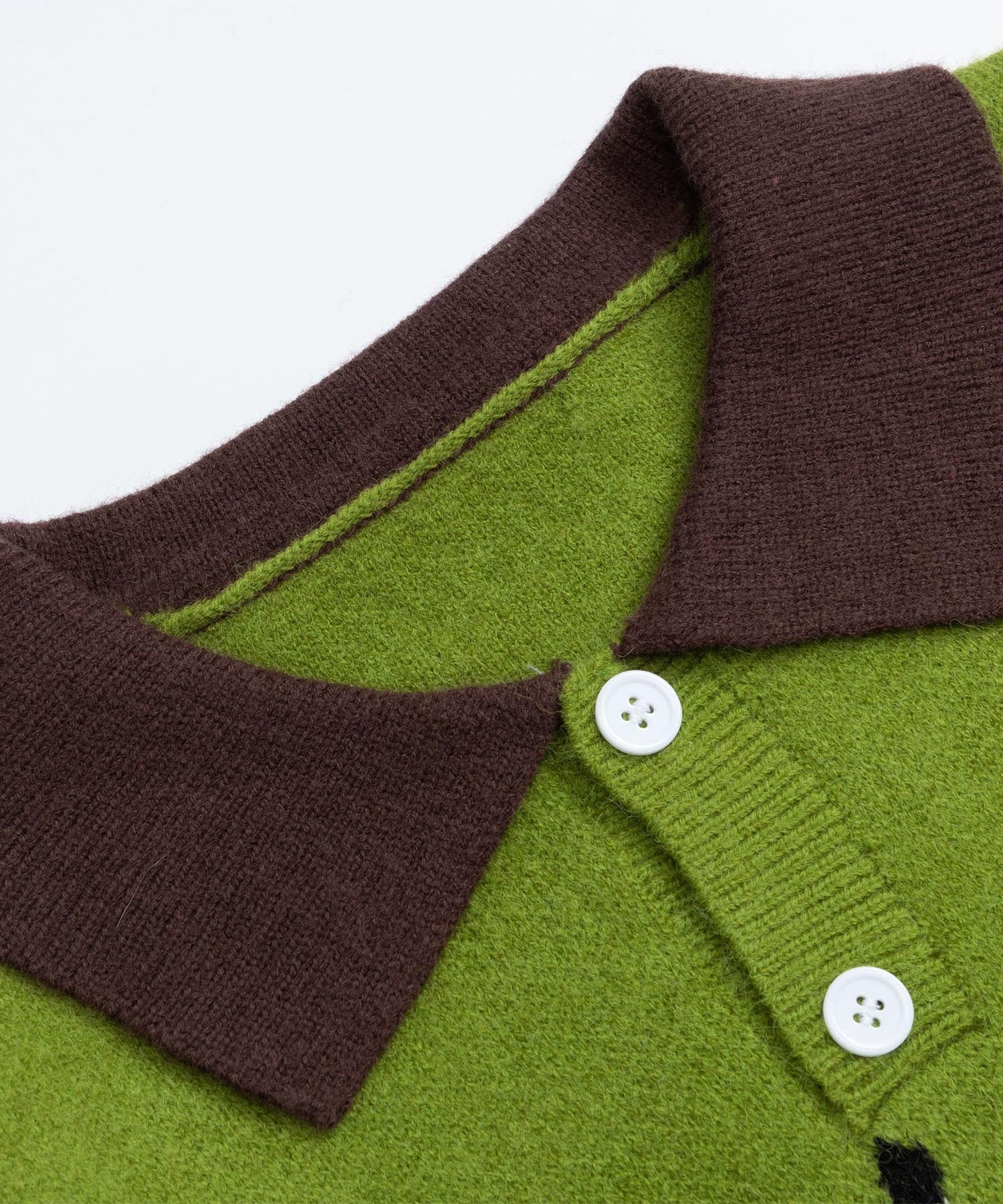 ゆったりとしたシルエットでユニセックスに着こなしやすく、古着MIXやかわいいストリートスタイルに映える存在感。レトロ感のある配色とポロ襟で、カジュアルの中にもクラシックな雰囲気をプラスしてくれます。